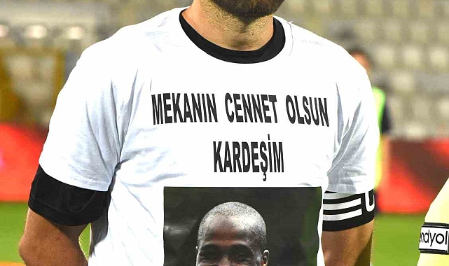 Erzurumspor FK Kaptanı Mustafa Yumlu, önceki gün hayatını kaybeden eski takım arkadaşı Adanaspor Teknik Direktörü Sol Bamba'nın fotoğraflı tişörtü ile sahaya çıktı.
