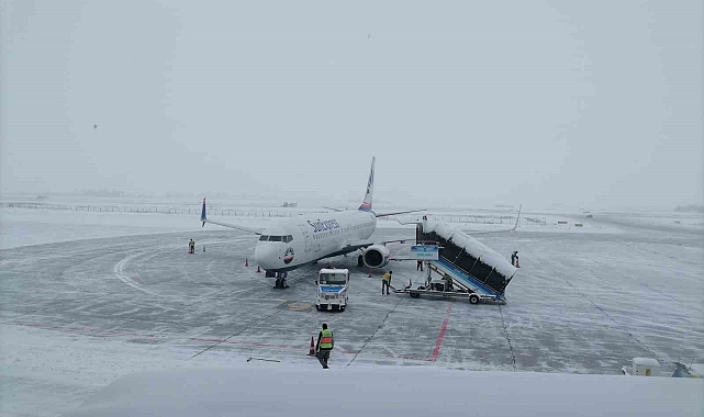 Erzurum'u 3 gündür adeta esir alan yoğun ve aralıksız kar yağışına rağmen hava limanında uçakların iniş ve kalkışları güvenli şekilde sağlanıyor.