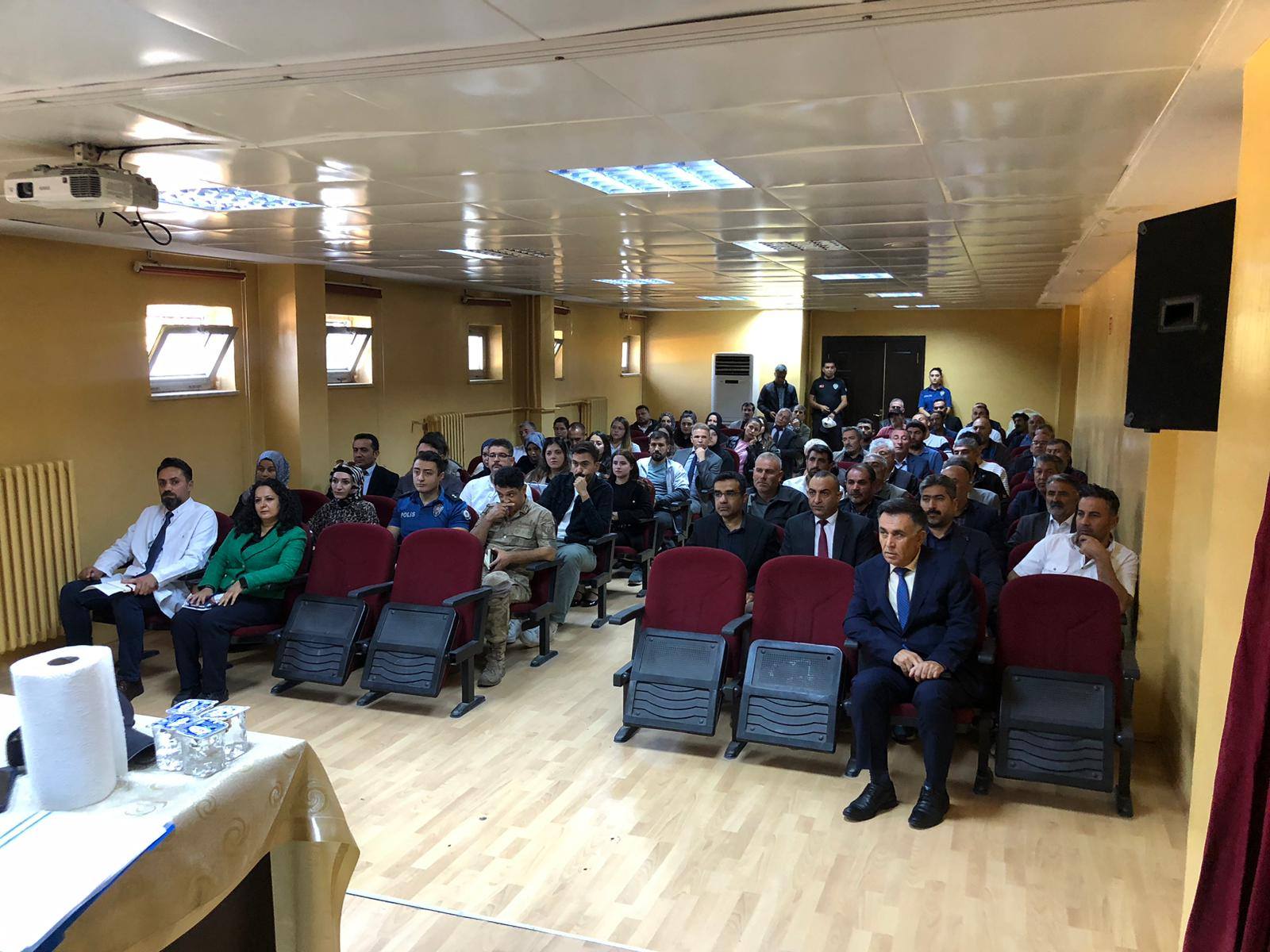 Ahmet Ali Dönmez Anadolu Lisesi Konferans Salonu’nda düzenlenen toplantıya; Kaymakam Fatih Erdoğan başkanlık etti. İlçe Emniyet Amirliği, İlçe Jandarma Komutanlığı ve İlçe Milli Eğitim Müdürlüğü koordinesinde gerçekleşen toplantıya, kamu kurum amirleri, köy ve mahalle muhtarları, STK yöneticileri, taşıyıcı kooperatif başkanları, okul müdürleri ve okul-aile birliği başkanları katıldı.