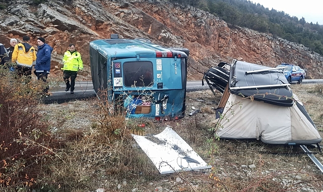 Antalya'nın Akseki ilçesinde karavan amaçlı kullanılan minibüsün devrilmesi sonucu meydana gelen trafik kazasında yabancı uyruklu sürücü yaralandı.