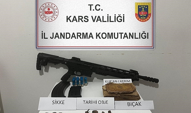 Edinilen bilgilere göre, Kars İl Jandarma Komutanlığı'nca yapılan istihbari çalışmalarda Susuz ilçesi kırsalında bir kişinin elinde tarihi eser ve tarihi eser niteliği taşıyan objeler olduğu, satmak için müşteri aradığı belirlendi. Kars Cumhuriyet Başsavcılığı koordinesinde şüphelinin evine operasyon düzenlendi. Evde yapılan aramada 1 ciltsiz sarı saman kağıda yazılı eski Kur'an-ı Kerim, 3 adet sikke, tarihi eser olduğu değerlendirilen 1 bıçak, 1 yüzük ve 4 obje ile 1 ruhsatsız av tüfeği, 2 av tüfeğine ait şarjör ve 7 av tüfeğine ait fişek ele geçirildi. Olayla ilgili "2863 Sayılı Kültür ve Tabiat Varlıklarını Koruma Kanunu'na muhalefet" suçundan 1 kişi gözaltına alındı. Gözaltına alınan şüpheli, çıkarıldığı nöbetçi mahkemece serbest bırakıldı.