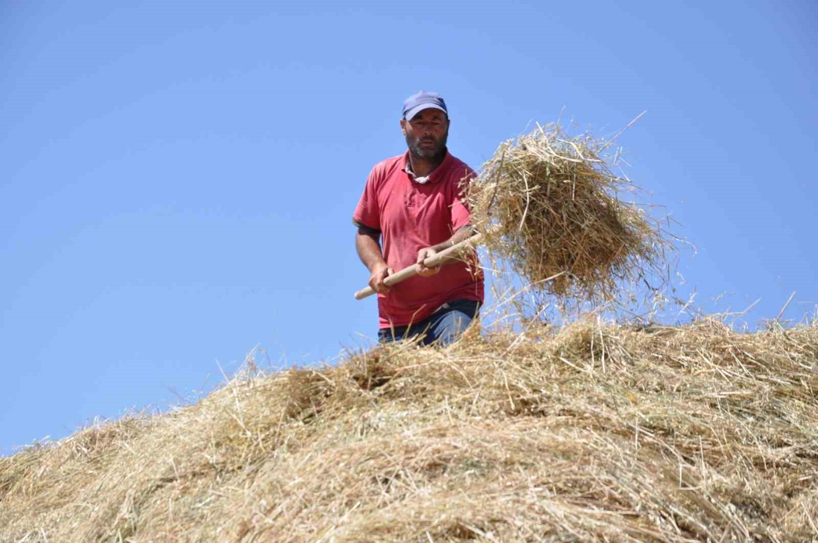 Öte yandan, çiftçiler sabahın erken saatlerinde başlattıkları ot ve mahsul toplama mesaisini akşam saatlerine kadar sürdürüyor.
