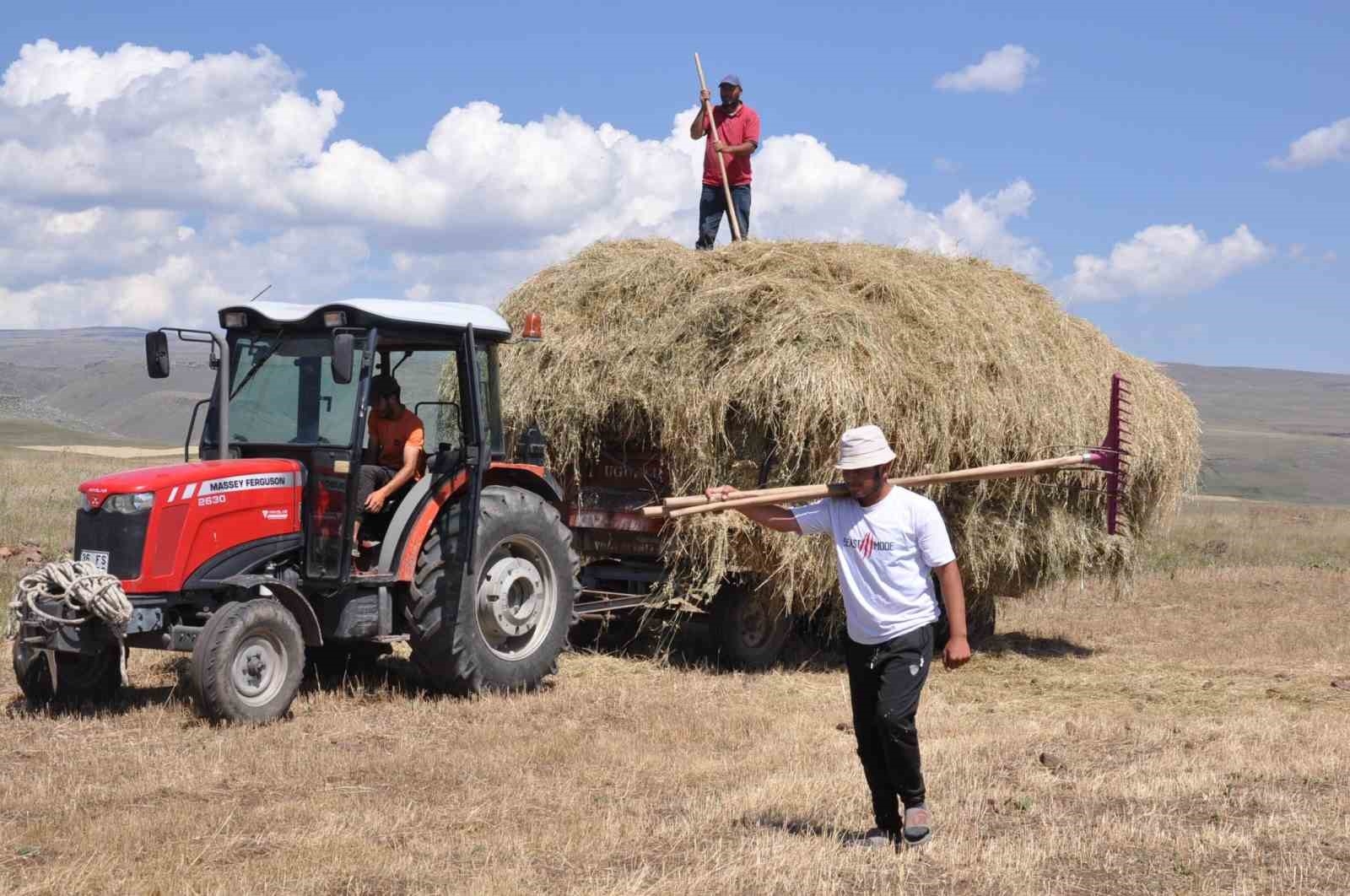 Kars'ta kış hazırlıkları için kolları sıvayan çiftçiler, kavurucu sıcağa aldırış etmeden biçtikleri otlarını toplarken, arpa, yulaf ve buğdaylarını ise saman yapıp, hayvanlarının kışlık yiyeceklerini hazırlıyor.