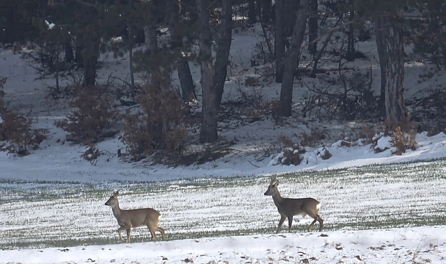 - Yoğun kar nedeniyle ormanlarda yiyecek bulamayan karacalar, köylerin ekili tarım arazilerine yöneldi.