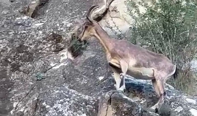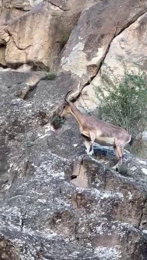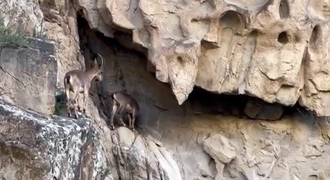 Erzurum'un Tortum ve Uzundere ilçelerinde kayaların üzerinde dolaşan yaban keçileri kameralara yansıdı.