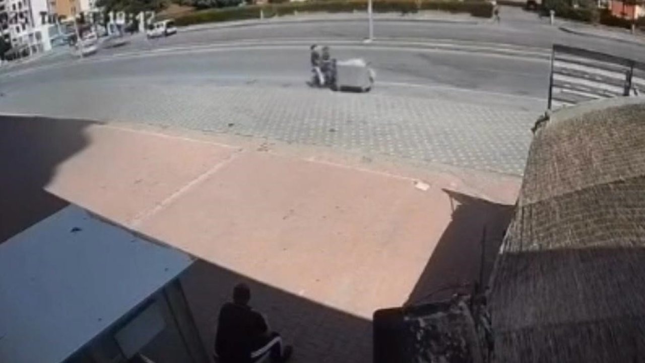 Kayseri’nin Melikgazi ilçesine bağlı Gökkent Mahallesi’nde Kocasinan Caddesi üzerinde elektrikli scooter ile ilerleyen 2 kişi, yol kenarında duran çöp konteynerine yavaş şekilde çarptı. Çarpmanın etkisiyle 2 kişide scooterdan düşerken, kazada yaralanan olmadı. Scooter ile ilerleyen şahısların etrafında hiçbir olmamasına karşın düz şekilde ilerleyerek, konteynera çarpması kazayı görenleri güldürdü. Kaza anı, bir iş yerinin güvenlik kamerasına anbean yansıdı.
