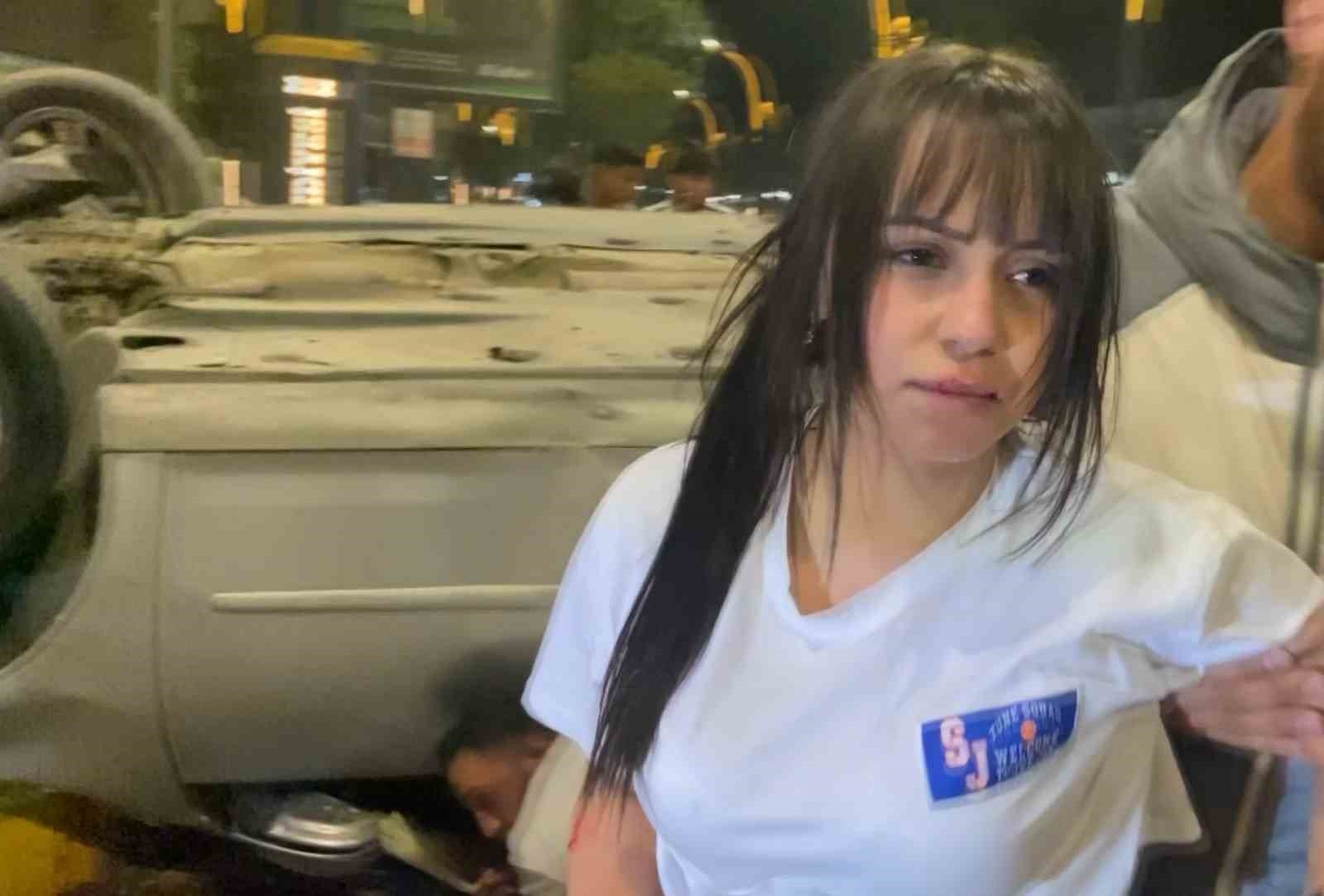 Aksaray'da sürücüsünün direksiyon hakimiyetini kaybettiği otomobil dönel kavşağa çarparak takla attı. Ters dönen otomobilde sıkışan yaralı kadın sürücü araçtan çıkarılır çıkarılmaz hamile olan arkadaşına koşup onun yarasını sardı.