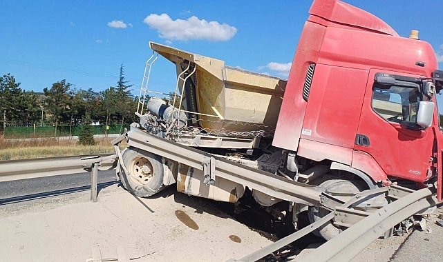Bilecik'te seyir halinde kontrolden çıkan kamyonun refüje çarpması sonucu meydana gelen trafik kazasında şans eseri ölen veya yaralanan olmadı.