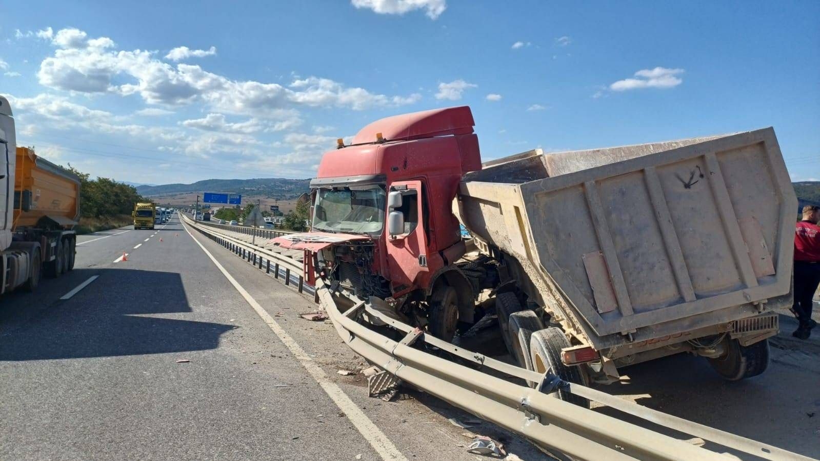 Bilecik'te seyir halinde kontrolden çıkan kamyonun refüje çarpması sonucu meydana gelen trafik kazasında şans eseri ölen veya yaralanan olmadı.