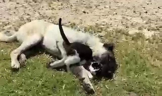 Elazığ merkeze bağlı Nuralı köyünde kangal cinsi bir köpek ve kedinin dostluğu görenlerin dikkatini çekiyor. Kedinin, köpeğin yanına uzanıp yatması ve oynaması çevredekiler tarafından cep telefonu kamerasıyla kaydedildi. Sıcak havanın tadını çıkararak oynayan kedi ve köpeğin dostluğu ise görenlerin yüzünde tebessüm oluşturdu.