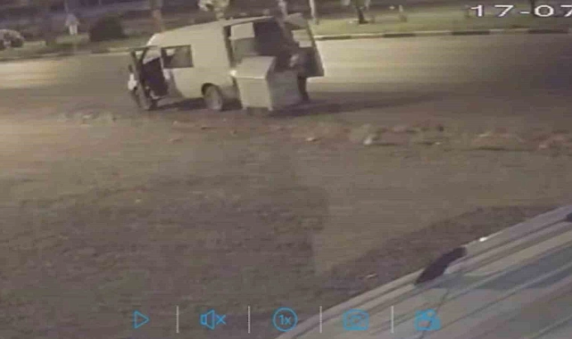 Hatay'ın Kırıkhan ilçesinde akıllara durgunluk veren bir hırsızlık olayı yaşandı. Araçla gelen iki şahıs, yol kenarında duran bir çöp konteynerini alıp araçlarına yükleyerek çaldı. Bu ilginç anlar güvenlik kameralarına saniye saniye yansıdı.