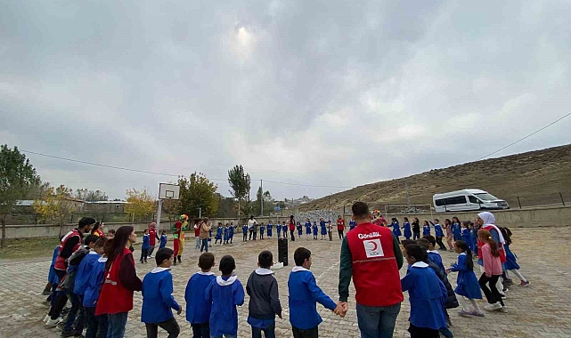 Türk Kızılay'ı Ağrı Şubesi gönüllüleri, köy okulu öğrencileriyle bir araya gelerek eğlendi.