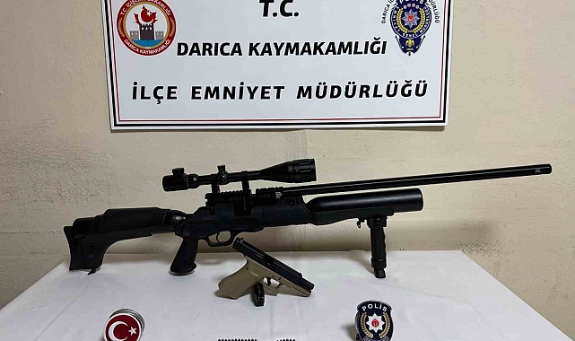 Edinilen bilgilere göre, Darıca'da uygulama yapan polis ekipleri, şüpheli hareketler sergileyen E.G.D.'yi durdurarak üst araması yaptı. Yapılan aramada şahsın üzerinden bir adet havalı tüfek, bu tüfeğe ait 90 adet mermi ve bir adet tabanca bulundu.