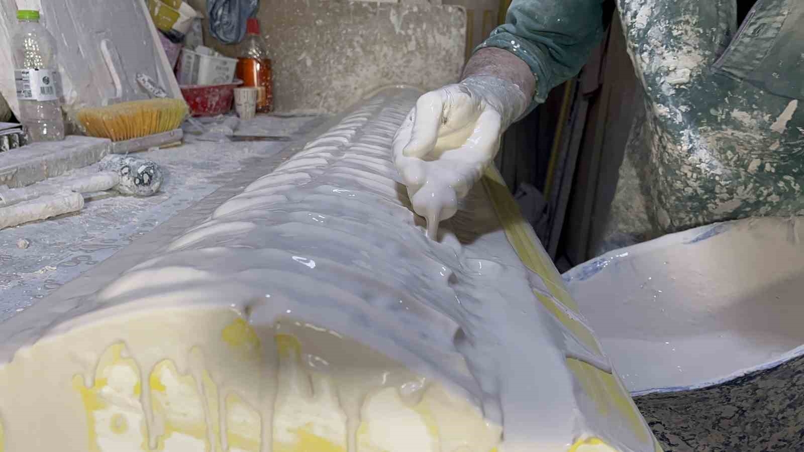 İşlerinin çoğunun dekoratif ve mimari işler olduğunu belirten Yavuz, "İnşaat sektöründe alçının kullanılmadığı alan yok. Yalnız bizim alçımız doğal, duvar çıtalamaları yapıyoruz, köşe kartonpiyerler yapıyoruz. Villalara, normal dairelere tamamen dekoratif ürünler. İşimizin imalat boyutu var. Beğenilen modele göre 1 hafta imalatı süren malzemelerimiz oluyor. Tamamen istenilen şekle göre, işin uygulama boyutu da 3-4 gün sürer. Yani baştan sona tamamen emek işi" diye konuştu.