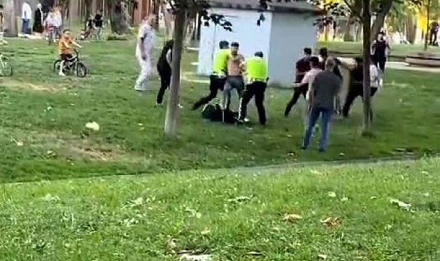 Bursa'nın İnegöl ilçesinde korna çalma nedeniyle çıkan tartışma kavgaya dönüştü. Birbirlerine tekme-tokat saldıran 5 şahıs polis ekiplerince zorlukla etkisiz hale getirildi. Kavga anı amatör kameraya yansıdı.