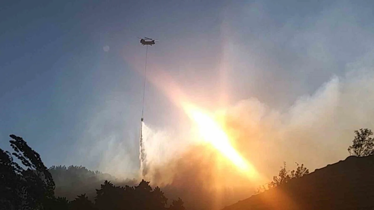 Bölgede iki gündür devam eden şiddetli rüzgar yangının geniş bir alana yayılmasına sebep olurken, arazinin sarp ve dik olması da kara müdahalesini zorlaştırıyor.