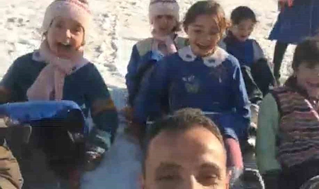 Ağrı'nın Tutak ilçesine bağlı Dağlıca köyünde öğretmenlik yapan Eren Oruç, köyde etkili olan kar yağışının ardından öğrencileriyle beraber karın tadını çıkarmak için kayak yaptı. Poşetler ve tahtadan yaptıkları kızaklarla tepeden aşağıya doğru kayan çocuklar doyasına eğlendi.
