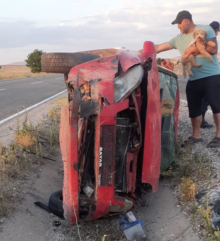 Kaza, Aksaray - Nevşehir Karayolu Çağlayan mevkiinde meydana geldi. Edinilen bilgiye göre, Nevşehir'den Aksaray istikametine seyreden S.K. (47) idaresindeki 50 ACG 460 plakalı otomobil, sürücüsünün direksiyon hakimiyetini kaybetmesi sonucu takla atarak refüje düştü. Kazayı gören diğer sürücüler durumu hemen 112 Acil Çağrı Merkezine bildirdi. İhbar üzerine olay yerine sağlık ve jandarma ekipleri sevk edildi. Takla atıp hurdaya dönen otomobilden köpeğiyle birlikte burnu bile kanamadan kurtulan sürücü kucağındaki köpeğiyle uzun süre aracın başından ayrılamadı. Jandarma ekiplerinin bir başka kazanın yaşanmaması için güvelik önlemi aldığı karayolunda sağlık ekipleri sürücüyü ambulansta sağlık kontrolünden geçirdi. Trafiğin bir süre tek şeritten verildiği karayolunda yapılan incelemelerin ardından otomobil çekiciyle otoparka çektirildi.