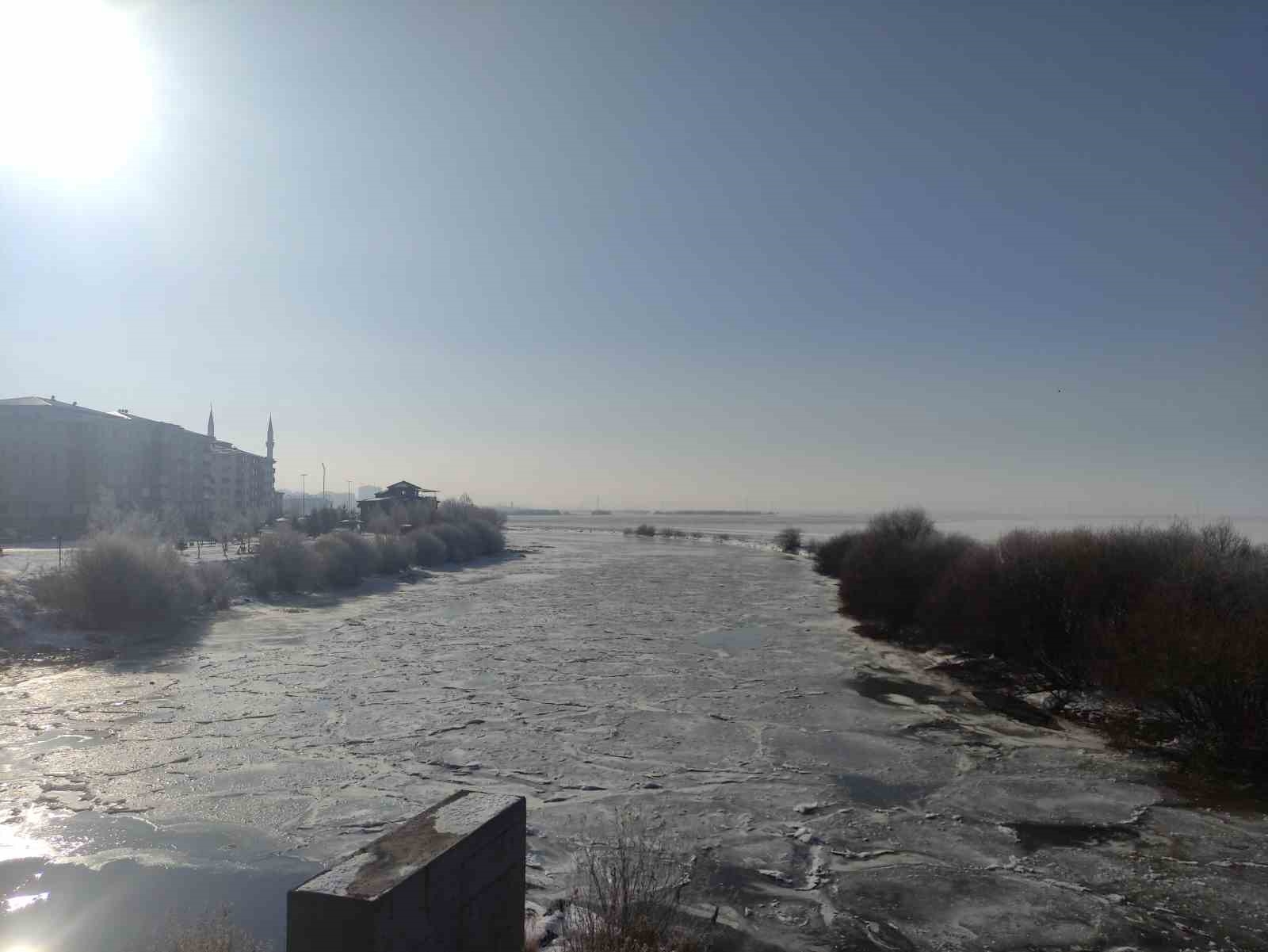 Ardahan'ın Göle ilçesinden doğan Kura Nehri, geceleri sıcaklığın sıfırın altında 20 dereceye kadar düşmesi sonucu buz tuttu.