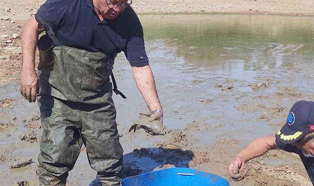 Kurak geçen aylar ve küresel iklim değişikliği sonrası kuruyan Bodrum Pınarlıbelen Mahallesindeki gölette bulunan ve ölmek üzere olan Sazan balıkları muhtarın talebi üzerine Muğla Tarım ve Orman İl Müdürlüğü Balıkçılık Su Ürünleri Şube Müdürlüğü ekipleri tarafından başka bir gölete taşındı.