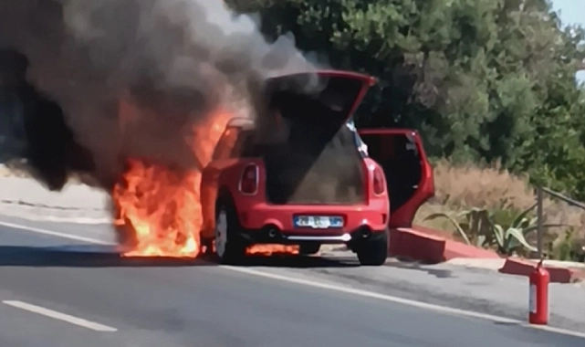 Aydın'ın Kuşadası ilçesinde seyir halindeyken yangın çıkan bir otomobil, alev topuna dönerek kullanılamaz hale geldi. Olayda ölen ya da yaralanan olmazken, araçtan geriye sadece iskeleti kaldı.