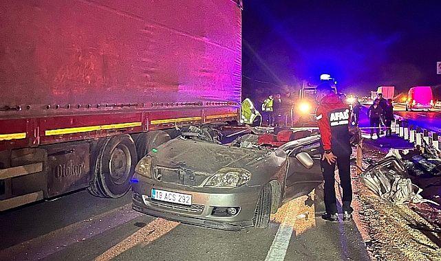 Edinilen bilgiye göre, Çorum istikametinden Amasya'nın Merzifon ilçesi yönüne doğru giden Buğra Yılmaz idaresindeki 19 ACS 292 plakalı otomobil, lastiğinin patlaması sonucu yolda duran Erdinç A.'nın kullandığı 52 BB 359 plakalı tırın dorsesine arkadan çarptı. Tırın altına girerek parçalanan otomobilin sürücüsü olay yerinde hayatını kaybetti. Kazanın bildirilmesi üzerine olay yerine acil yardım ekipleri sevk edildi. Araçta sıkışan sürücüsünün cenazesi, yapılan inceleme sonrası hurdaya dönen araçtan çıkartılarak hastane morguna götürüldü.