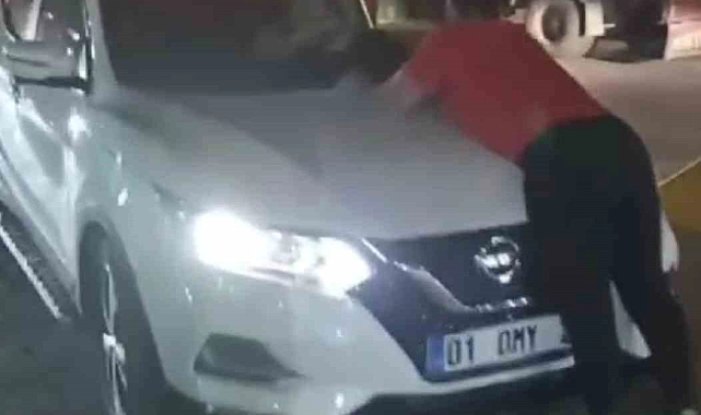 Edinile bilgiye göre olay merkez Seyhan ilçesine bağlı Saydam Caddesinde meydana geldi. İddiaya göre madde bağımlısı bir genç yoldan geçen araç sürücülerini rahatsız etmeye başladı. Bir süre sonra ise madde bağımlısı caddeden geçen bir kadın sürücünün kullandığı otomobilin kaputunun üzerine yatıp asıldı. Çok korkan kadın çığlık atmaya başladı. Çevredeki vatandaşlar kadının çığlığı üzerine şahsı otomobilin kaputunun üzerinden almak istedi. Ancak madde bağımlısı bir süre hareket halindeki otomobilin üzerine gitmeye devam etti. Korkan kadın ise hem çığlık atıp hem de yoluna devam etti. Çevredeki vatandaşların müdahalesiyle otomobilin üzerinden inen şahıs bu kez de otomobile vurarak zarar verdi. Bu anlar ise saniye saniye görüntülendi. Polis şimdi her yerde bu şahsı arıyor.