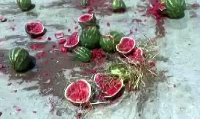 Sakarya'nın Geyve ilçesinde, ürünlerinin düşük fiyata satılmasına tepki gösteren bir çiftçi, römorkunda taşıdığı karpuzları pazar ortasında yere fırlatarak parçaladı. O anlar cep telefonu kamerasıyla saniye saniye kaydedildi.