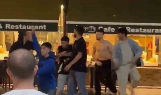 Görüntülerde, grupların birbirlerine tekme, yumruk ve çevrelerindeki sandalyelerle saldırdığı görüldü. Çevredeki vatandaşların araya girmesiyle kavga son buldu. Yaşanan bu şiddet anları, bir vatandaşın cep telefonu kamerasına saniye saniye kaydedildi.