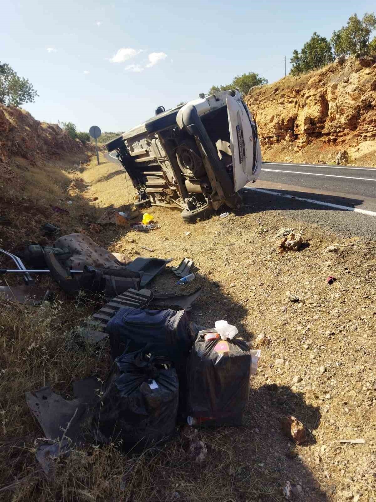 Alınan bilgilere göre, Midyat-İdil kara yolunda seyir halinde olan hafif ticari araç, sürücüsünün direksiyon hakimiyetini kaybetmesi sonucu kontrolden çıkarak takla attı. İhbar üzerine olay yerine sağlık, jandarma ve itfaiye ekipleri sevk edildi. Kazada araçta bulunan Mahsum B., Şükrü B. ve Mehmet Sadık A. yaralandı.