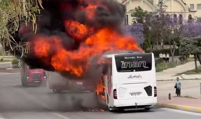 Mersin'in Toroslar ilçesinde Çağdaşkent Mahallesi Mimar Sinan Bulvarı üzerindeki Şehir Hastanesi Kavşağı'nda seyir halindeki bir yolcu otobüsü, henüz belirlenemeyen bir nedenle alev aldı. Kısa sürede alev topuna dönen otobüsteki yolcular, sürücünün dikkati sayesinde son anda tahliye edildi.