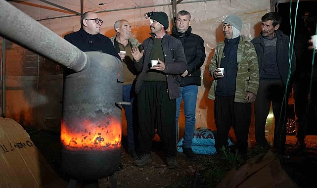 Sibirya soğuklarının etkisini arttırdığı Mersin'de üreticiler, seralarını korumak için sobalarını yakarak nöbet tutuyor. Örtü altı üretimde önemli bir yere sahip Erdemli ilçesinde de Belediye Başkanı Mustafa Kara, üreticilerle birlikte nöbet tuttu, onlara çorba ikram etti.