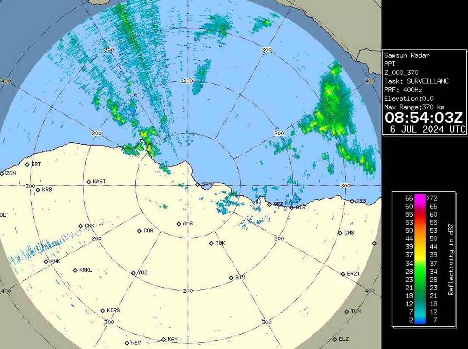 Yazı kurak geçiren Orta Karadeniz'de günlerdir beklenen yağışlar dün akşamdan itibaren etkili olmaya başladı. Yağışların Samsun, Ordu ve Giresun çevrelerinde yer yer çok kuvvetli (51-75 kg/m2) olması beklendiğinden MGM 'gök gürültülü sağanak yağış' uyarısı yaptı.
