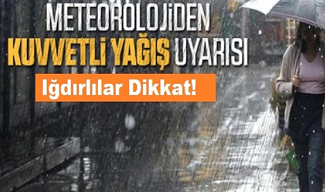 Meteoroloji 16. Bölge Müdürlüğünden yapılan açıklamada; “Yapılan son değerlendirmelere göre; Kars ve Ağrı çevreleri, Iğdır’ın Tuzluca ilçesi ve yüksek kesimlerinde yerel olarak kuvvetli sağanak ve gök gürültülü sağanak yağış beklendiğinden sel, su baskını, yıldırım, ulaşımda aksamalar, yağış anında kuvvetli rüzgar ve yerel dolu yağışı gibi olumsuzluklara karşı dikkatli ve tedbirli olunmalıdır” ifadelerine yer verildi.