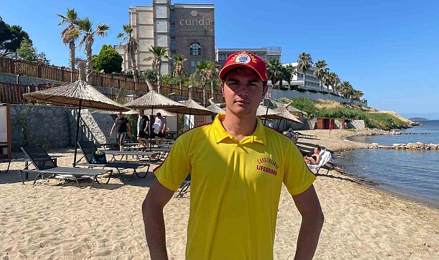 Balıkesir'in Ayvalık ilçesindeki Cunda Turizm Mesleki ve Teknik Anadolu Lisesi'nden geçen yıl mezun olan üniversite öğrencisi Taha Beyazdere (18), lisesinin uygulama otelinin plajında cankurtaran olarak görev yapıyor. Hem üniversite masraflarını karşılıyor hem de memleketinde iş deneyimi kazanıyor.