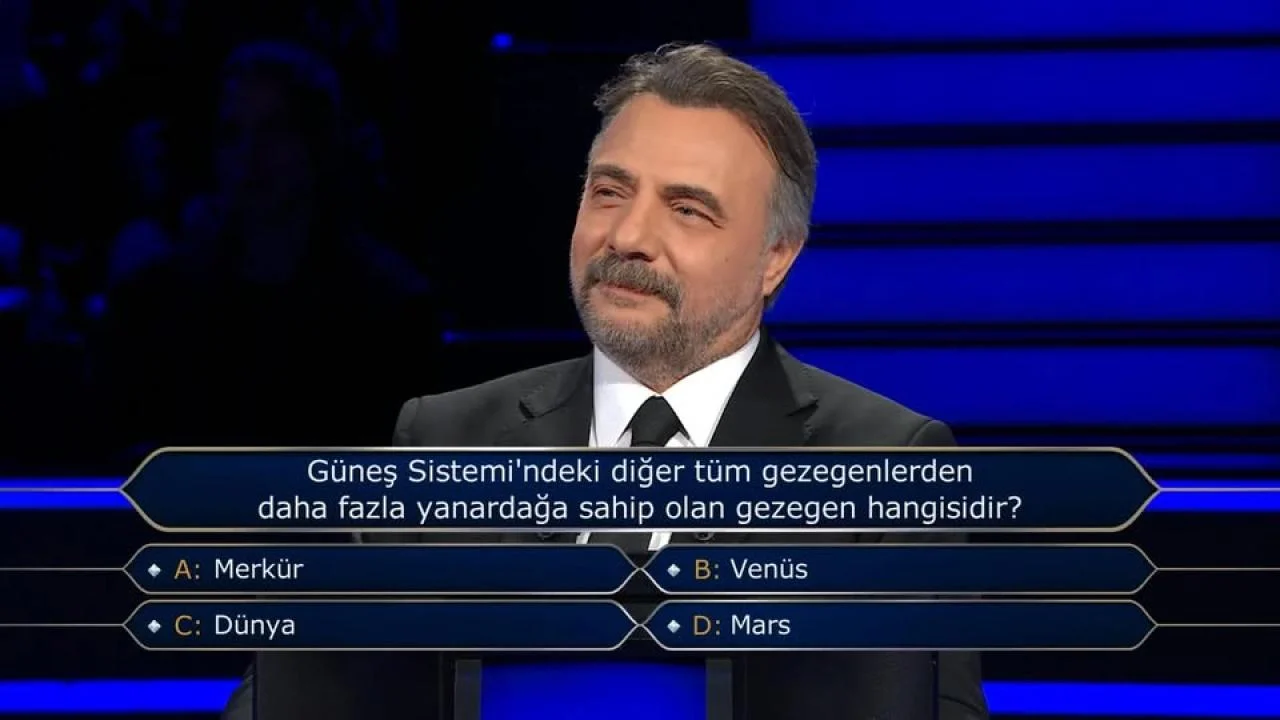 ATV'nin reyting rekortmeni bilgi yarışması programı Kim Milyoner Olmak İster, her hafta olduğu gibi bu hafta da ilgi çekici ve düşündürücü sorularla izleyicileri ekran başına kilitledi. Sevilen sunucu Oktay Kaynarca'nın sunduğu programın 14 Aralık 2025 Pazar günü yayınlanan bölümünde, yarışmacı Mehmet Sakin'e sorulan 500 bin liralık soru, Güneş Sistemi'nin volkanik yapısı hakkında önemli bir detayı ortaya çıkardı.