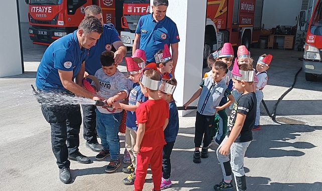 Denizli'de İtfaiye Haftası etkinlikleri kapsamında ilkokul öğrencileri Denizli Büyükşehir Belediyesi Buldan İtfaiye Grup Şefliğinde küçük çaplı bir tatbikat yaptı.