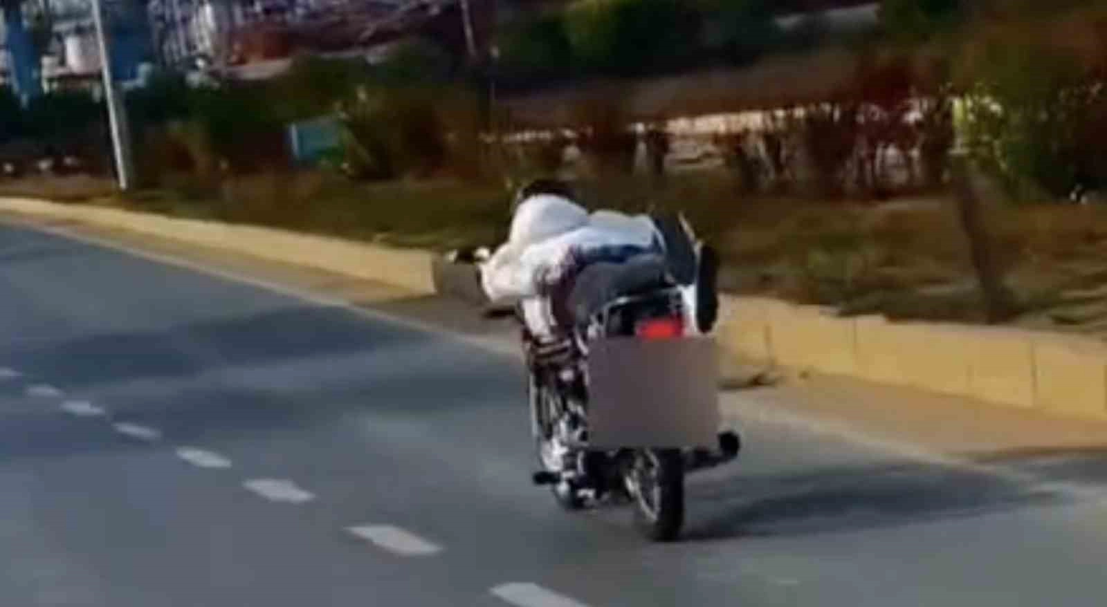 Kastamonu'da seyir halindeki motosikletin üzerinde uzanan sürücü, trafiği tehlikeye düşürdü. Daha sonra o anlarda kaydedilen görüntüleri sosyal medya hesabından paylaşan A.E. isimli şahısla ilgili İl Emniyet Müdürlüğü ekipleri, harekete geçti.