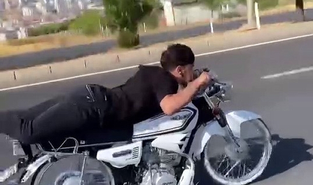 Edinilen bilgiye göre, Çevre Yolu'nda kaskı ve koruyucu elbisesi olmayan bir sürücü, seyir halindeyken motosikletinin üzerine uzandı. Yatarak motosiklet kullanan sürücü, hem kendini hem de trafikteki diğer sürücüleri tehlikeye attı. Tehlikeli yolculuğu gören bir araç sürücüsü ise o anları cep telefonu kamerasıyla kaydetti. Bir süre bu şekilde seyreden motosikletli gözden kayboldu.