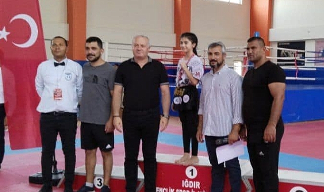 MuayThaı Iğdır İl şampiyonu olan Rugayye Aysıla Gülbey madalyasını babası Göksel Gülbey’den aldı.