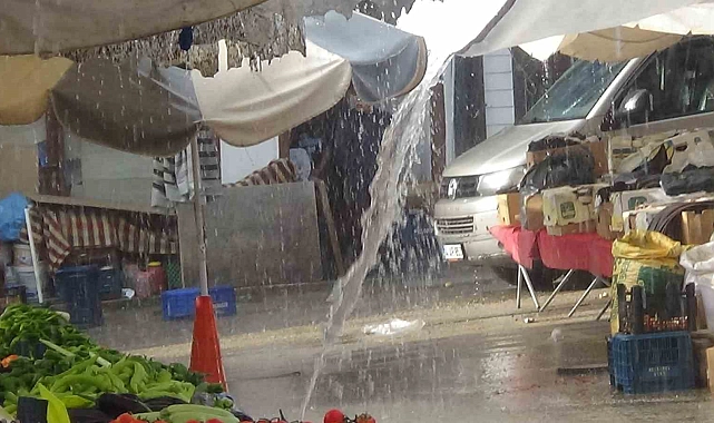 Beklenmedik bir anda başlayan şiddetli yağmur, pazar yerinde telaşa neden oldu. Hazırlıksız yakalanan çok sayıda vatandaş, yağmurdan korunmak için çevredeki dükkanların saçak altlarına ve bulabildikleri kapalı alanlara sığınmaya çalıştı.