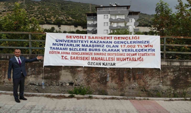 Hatay'ın İskenderun ilçesinde Sarıseki Mahalle muhtarı Özcan Kayar, muhtarlık maaşını öğrencilere burs olarak dağıtacağını mahallesine astığı afişlerle duyurdu. Muhtar Kayar, 10 yıldır öğrencilere burs verdiğini belirterek muhtar olmasıyla birlikte elde ettiği maaşın tamamını dağıtacağını belirtti.