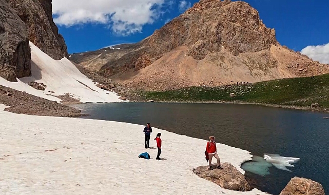 Munzur Dağları eteklerinde çadır kurup koyun sürüsü otlatan yaylacılarla çektikleri fotoğraf ve videolarla anı kalıcı kılan turistler yöredeki en büyük buzul göl olan Yeşil Göl'ün etrafında kamp kurarak geri dönüşe geçmeden uzunca mola verdiler.