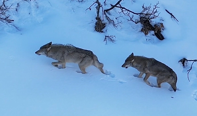 Görüntülerde, kurt ailesinin uzun süre karlı zirvelerde yiyecek aradığı görülüyor. Yiyecek bulmakta zorlanan kurtlar, daha sonra ormanlık alana doğru ilerleyerek gözden kayboluyor. O anlar, Özgür Şahin tarafından dron ile kayıt altına alındı.