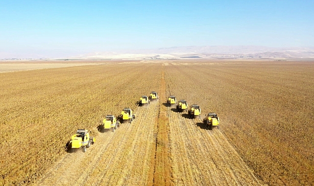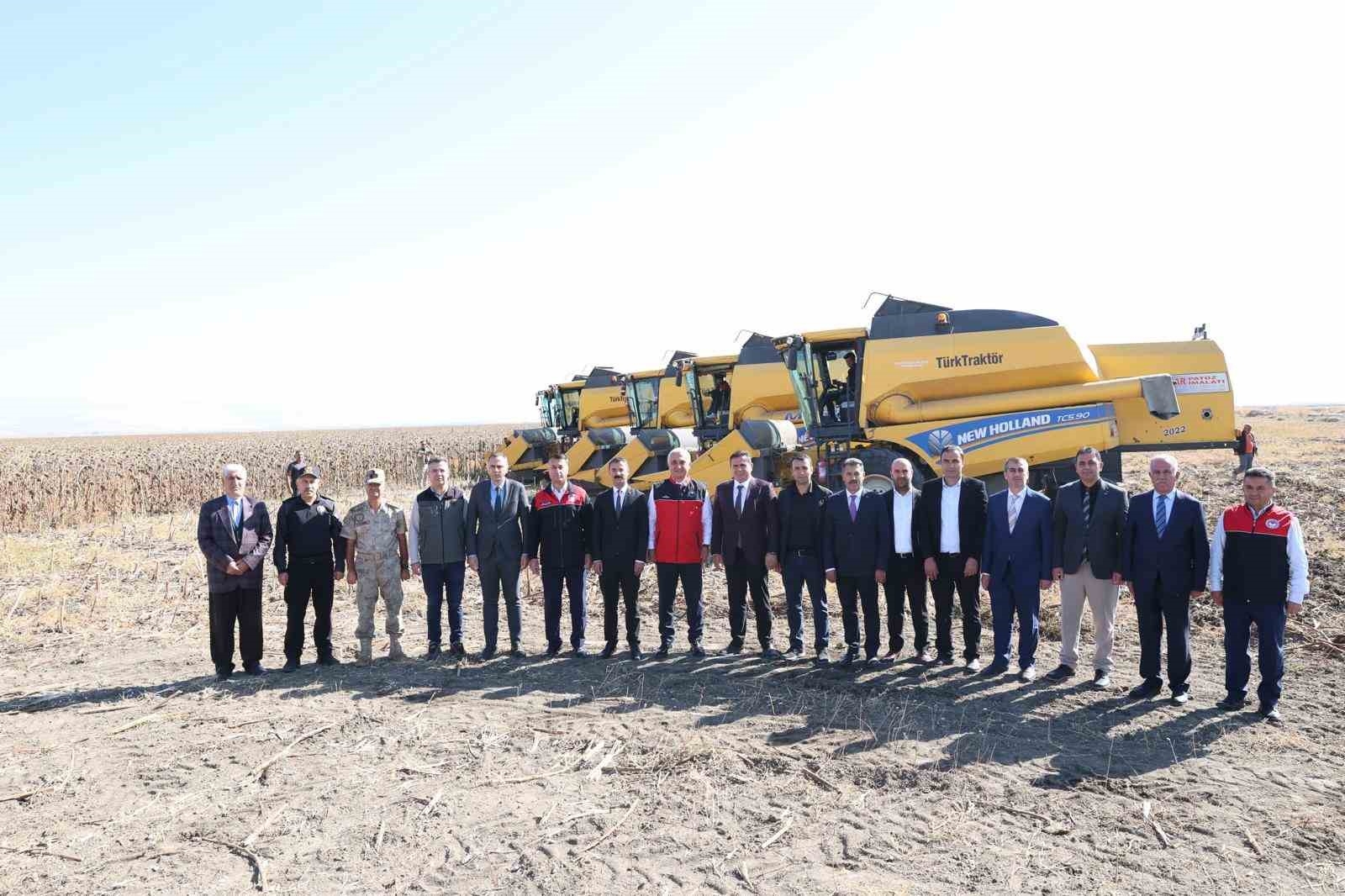 Konuşmaların ardından Vali Çakır, direksiyonuna geçtiği biçerdöverle ayçiçeği hasadı yaptı.