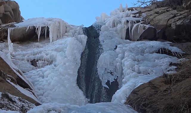 Muş'ta etkili olan şiddetli soğuklar, doğayı adeta bir kış masalına çevirdi. Merkeze 15 kilometre uzaklıktaki Derecik Köyü'nde bulunan şelale, metrelerce uzunluğundaki buz sarkıtlarıyla göz kamaştırıyor.