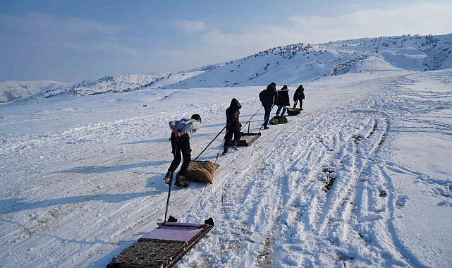 Koyu kar yağışı, köylerin yakınındaki yamaçları doğal bir kayak pistine dönüştürdü. Çocuklar, el becerileriyle hazırladıkları basit kızaklarla bu pistlerde saatlerce eğlendi. Mutlulukları gözlerinden okunan çocuklar, karın keyfini doyasıya çıkarıyor.