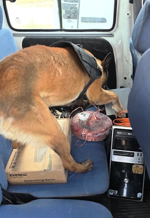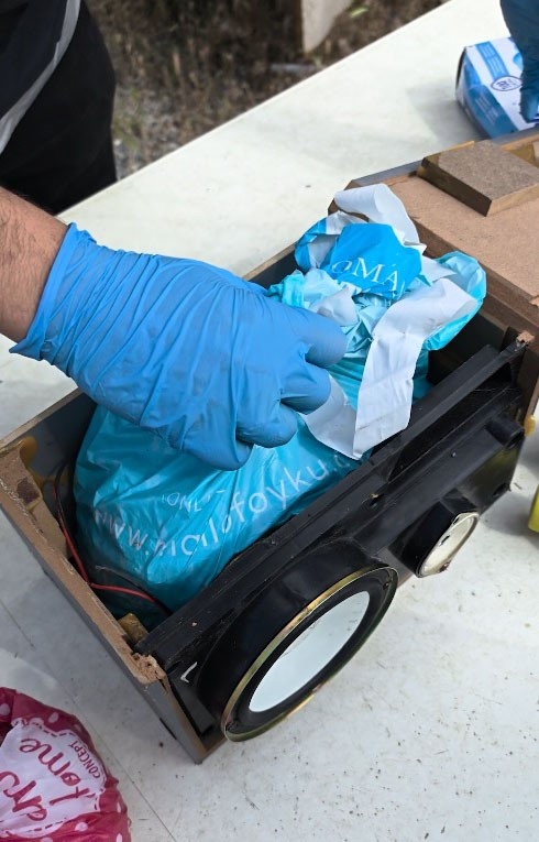 Muş'ta narkotik madde arama köpeği Thor'un katılımıyla yapılan aramada, aracın ses sistemi kabinine gizlenmiş 2 bin 902 gram metamfetamin ele geçirildi.