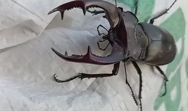 Türkiye'de nesli tükenen türler arasında kırmızı listede bulunan ve yaşam alanlarının genişletilmesi için çalışmalar yürütülen geyik böceği (Lucanus cervus) Elazığ'da görüntülendi.