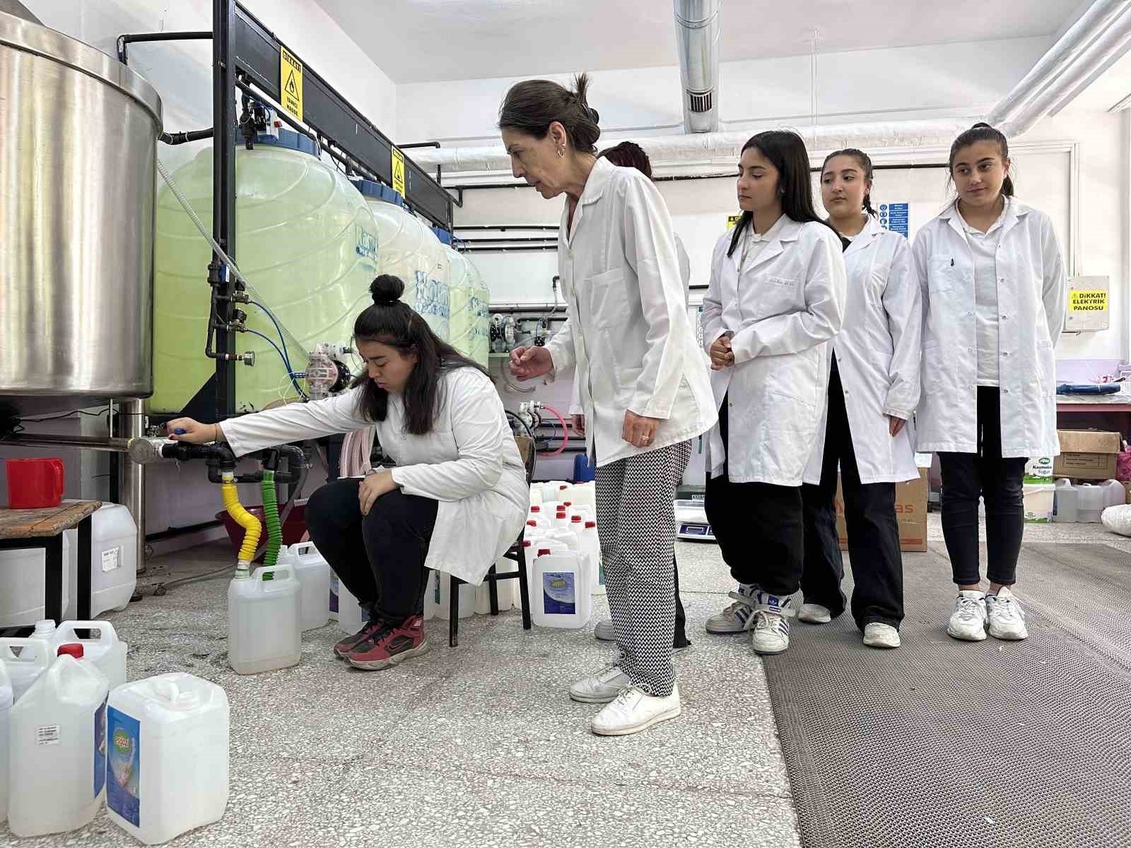 Eskişehir'de Gazi Mesleki ve Teknik Anadolu Lisesi'nde (MTAL) 2022 yılında 2.8 milyon lira maliyetle kurulan atölyelerde öğrenci ve öğretmenler tarafından üretilen temizlik ürünleri, aylık 10 ton üretim kapasitesiyle hem kentteki kurumların ihtiyacını karşılıyor hem de öğrencilere maddi kazanç sağlıyor.